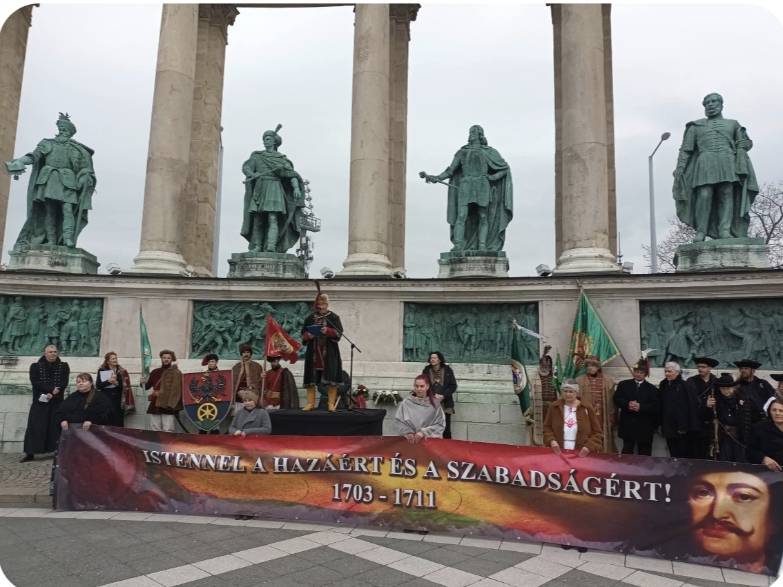 Karácsony Sándor, a nagy magyar pedagógus azt mondja, hogy Isten a magyarságnak mindig ad egy-egy ezer évet. Petraskó Tamás kuruc hagyományőrző, a Magyar Kultúra Lovagja beszédében szent helynek nevezte a Hősök terét, ahol a magyar nemzet dicső vezéreinek szobrai előtt állunk. Méltatta II. Rákóczi Ferencet,